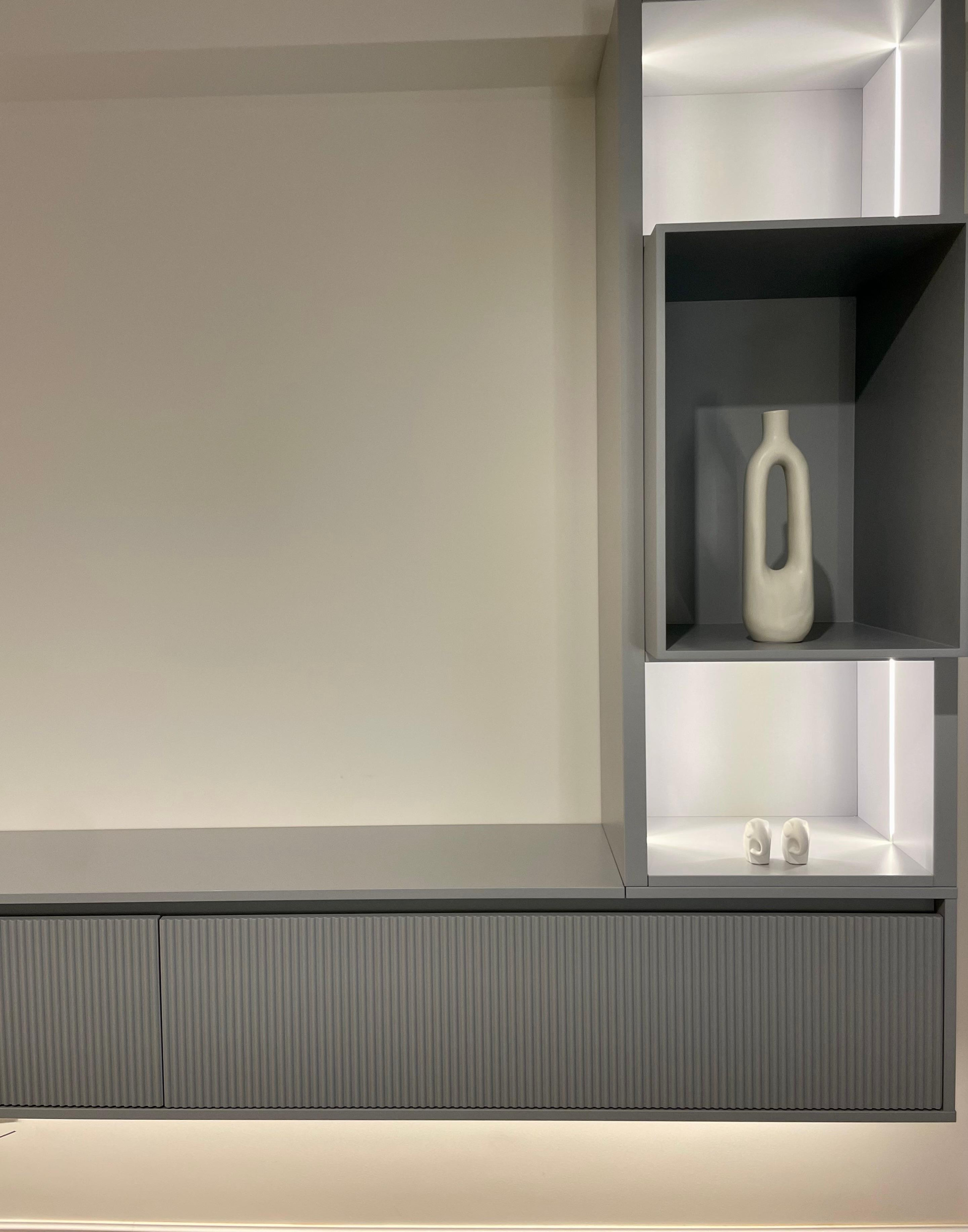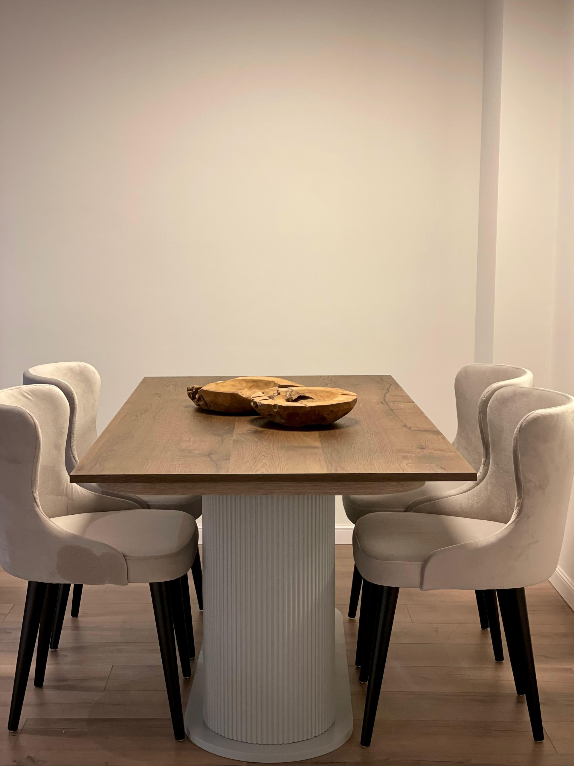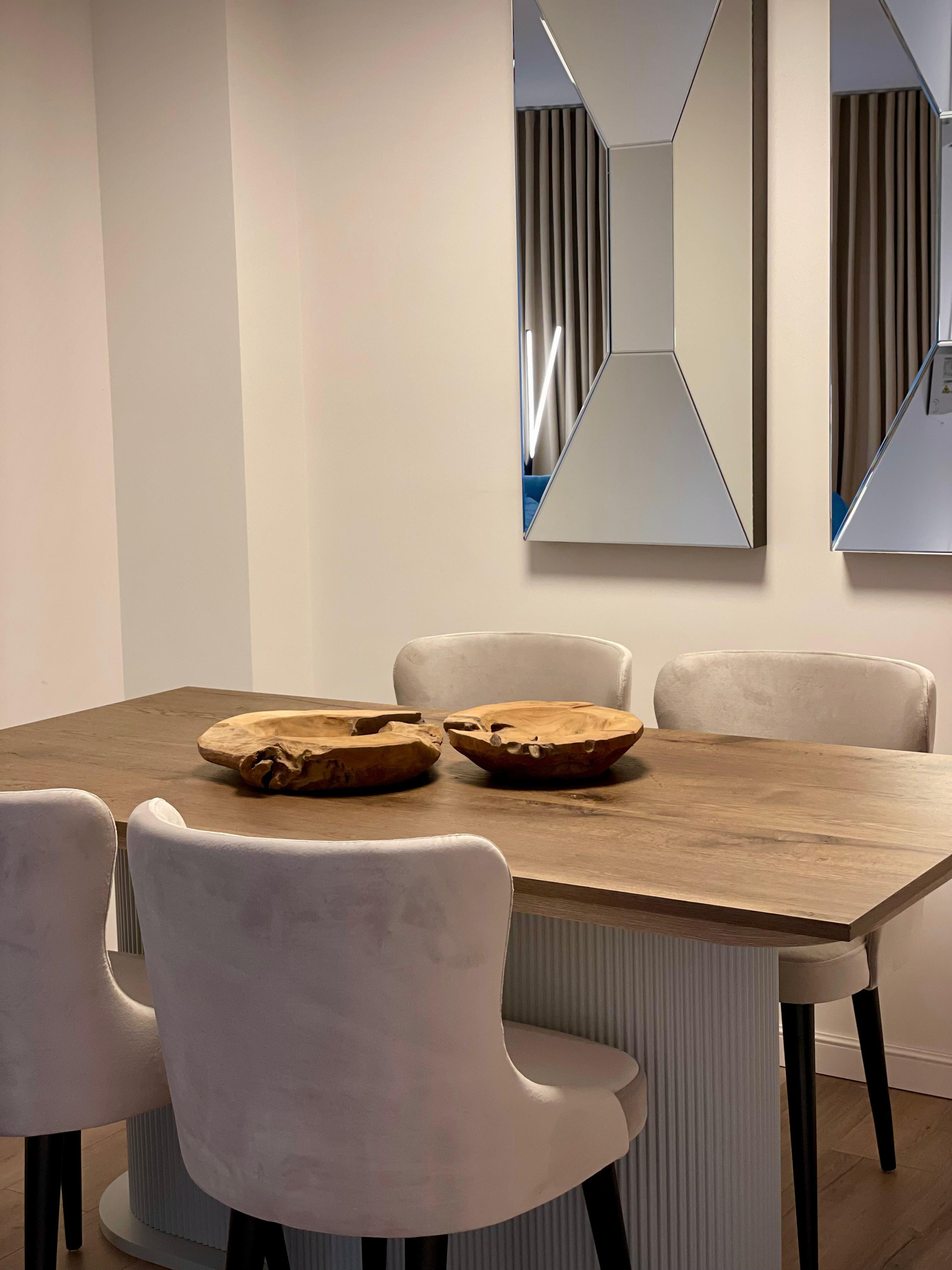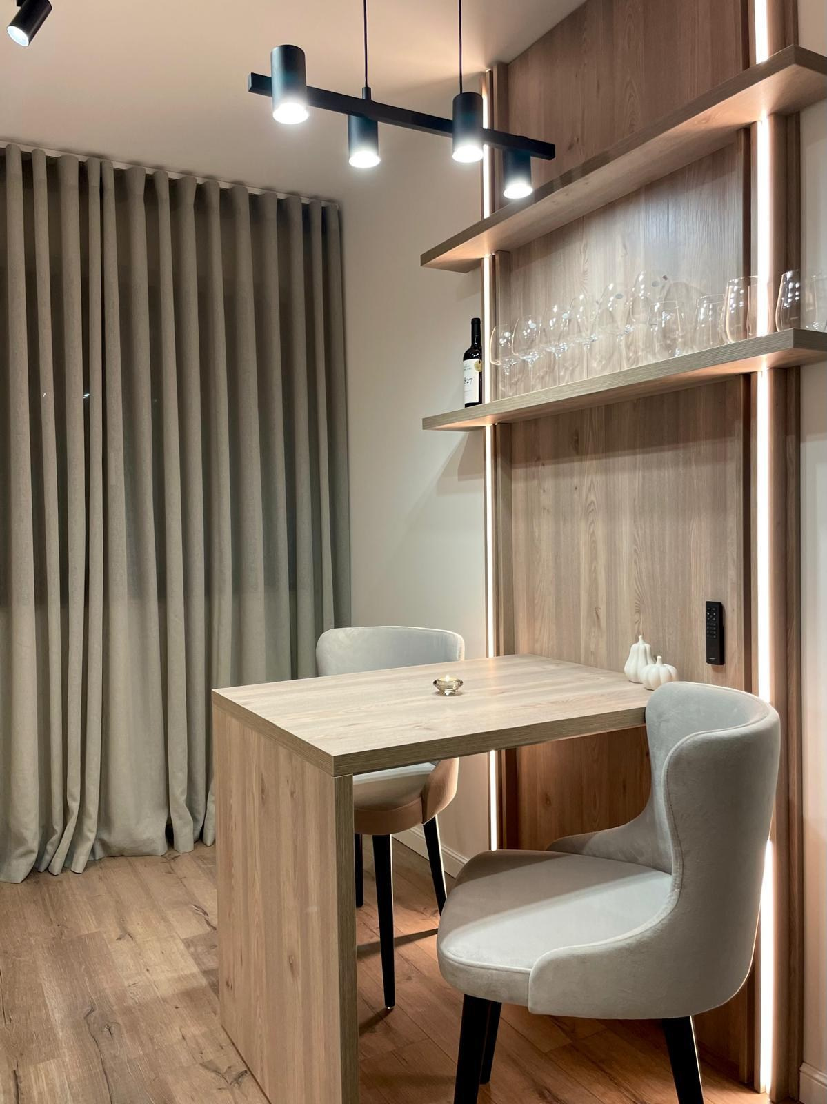 - Proiectul Aman 33 se remarcă printr-un design modern și minimalist, definit de linii curate și accente naturale. Piesele de mobilier se îmbină armonios cu texturile lemnoase și nuanțele neutre, creând o atmosferă caldă și primitoare. Obiectele decorative discrete și iluminarea atent integrată subliniază eleganța spațiului, transformându-l într-un loc echilibrat, stilat și confortabil.
