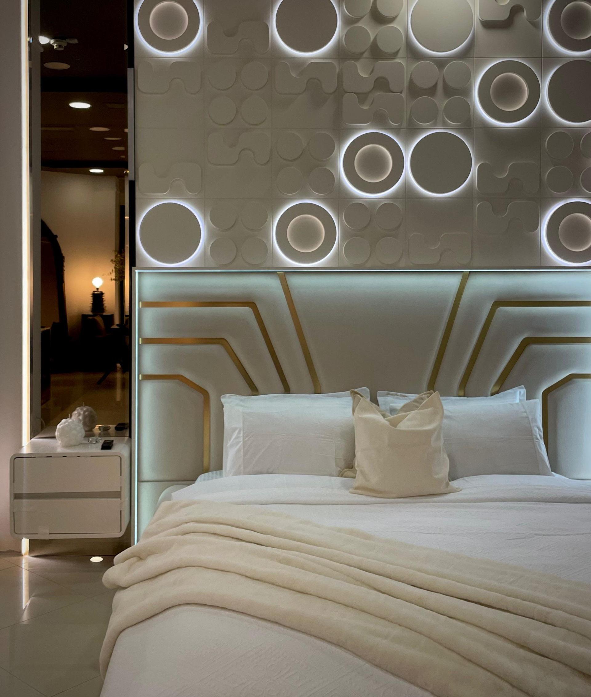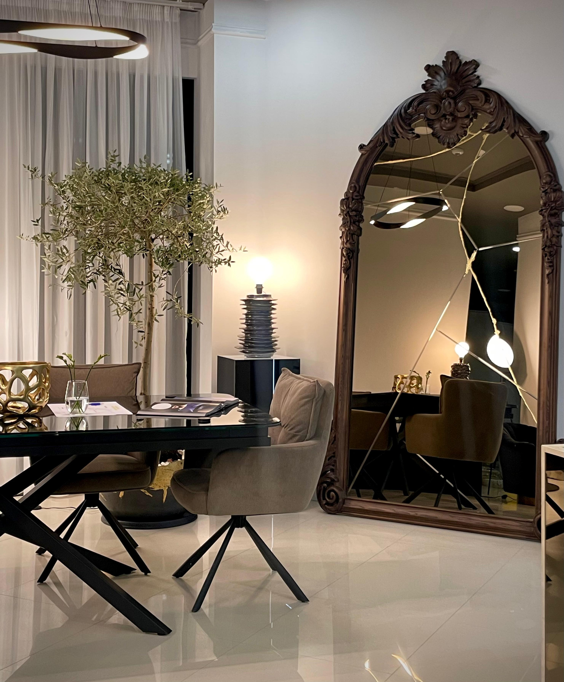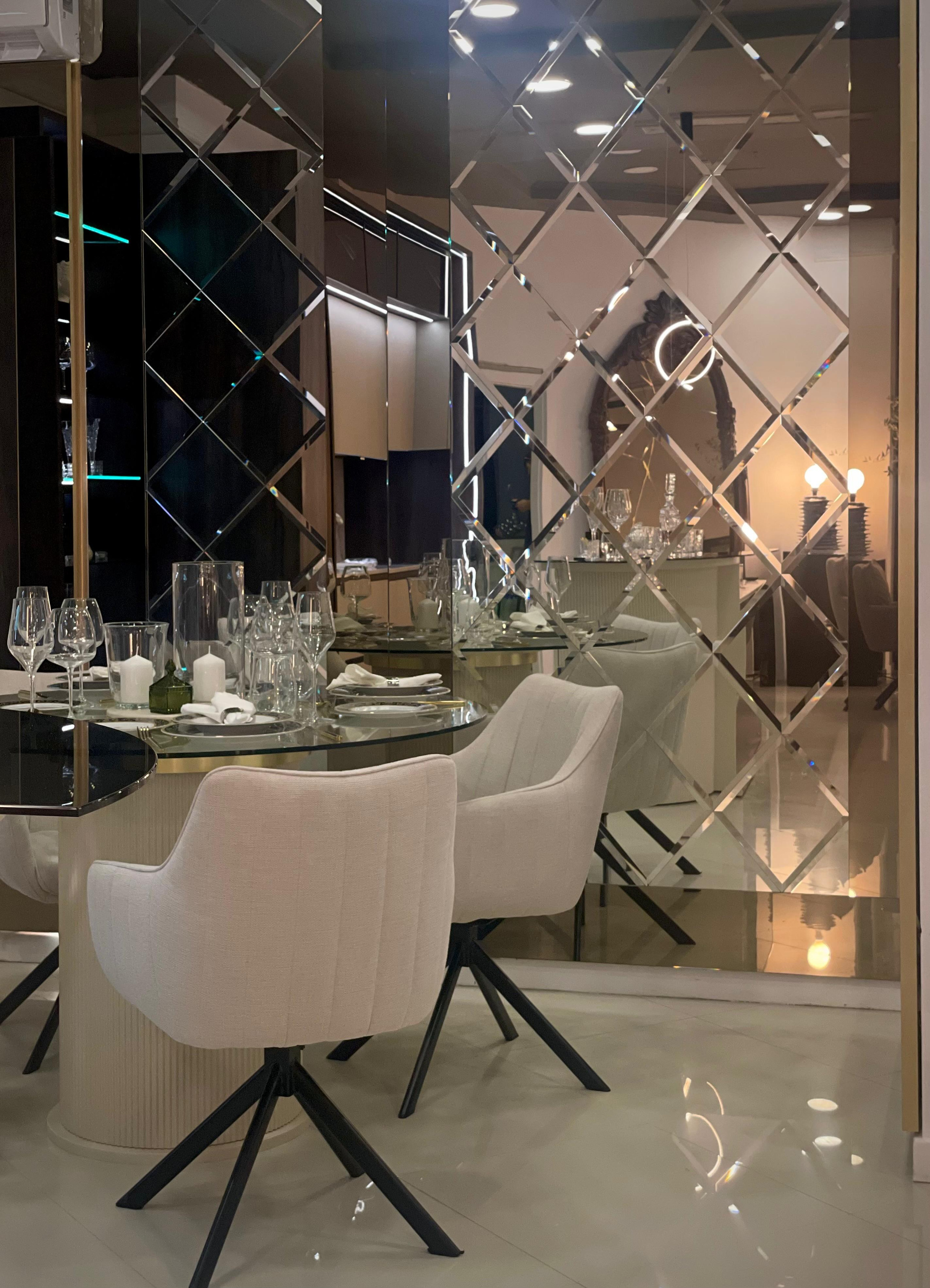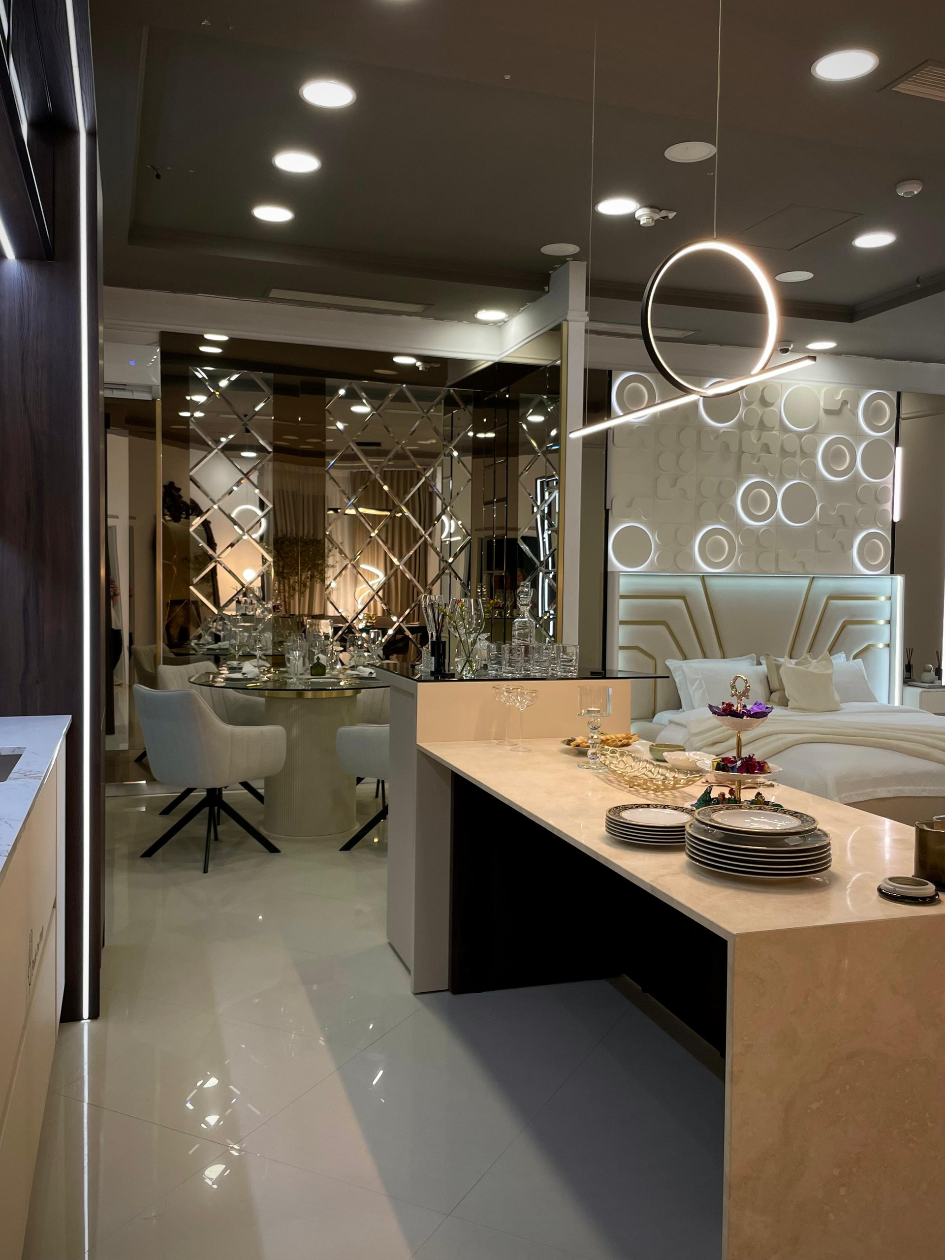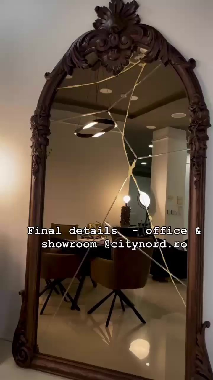 - City Nord - Showroom & office, surprinde printr-o atmosferă unitară, unde fiecare element este atent ales pentru a transmite eleganță și rafinament. Oglinzile generoase creează profunzime și jocuri spectaculoase de lumină, în timp ce finisajele premium și accentele aurii dau spațiului o notă exclusivistă. Mobilierul modern, corpurile de iluminat sculpturale și texturile fine se completează perfect, oferind un ambient sofisticat și primitor în același timp. Totul este gândit ca o experiență vizuală și senzorială, un exemplu de armonie între design contemporan și lux discret.