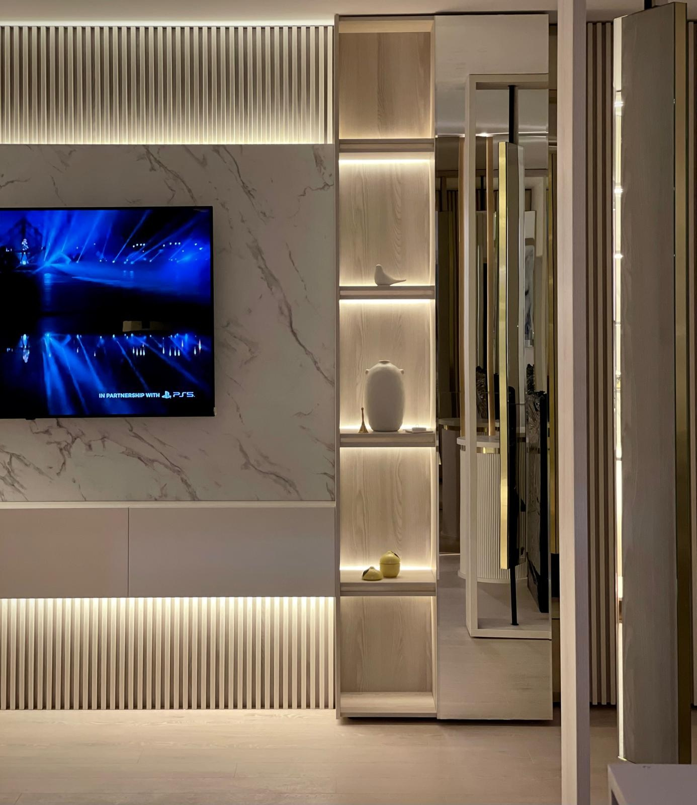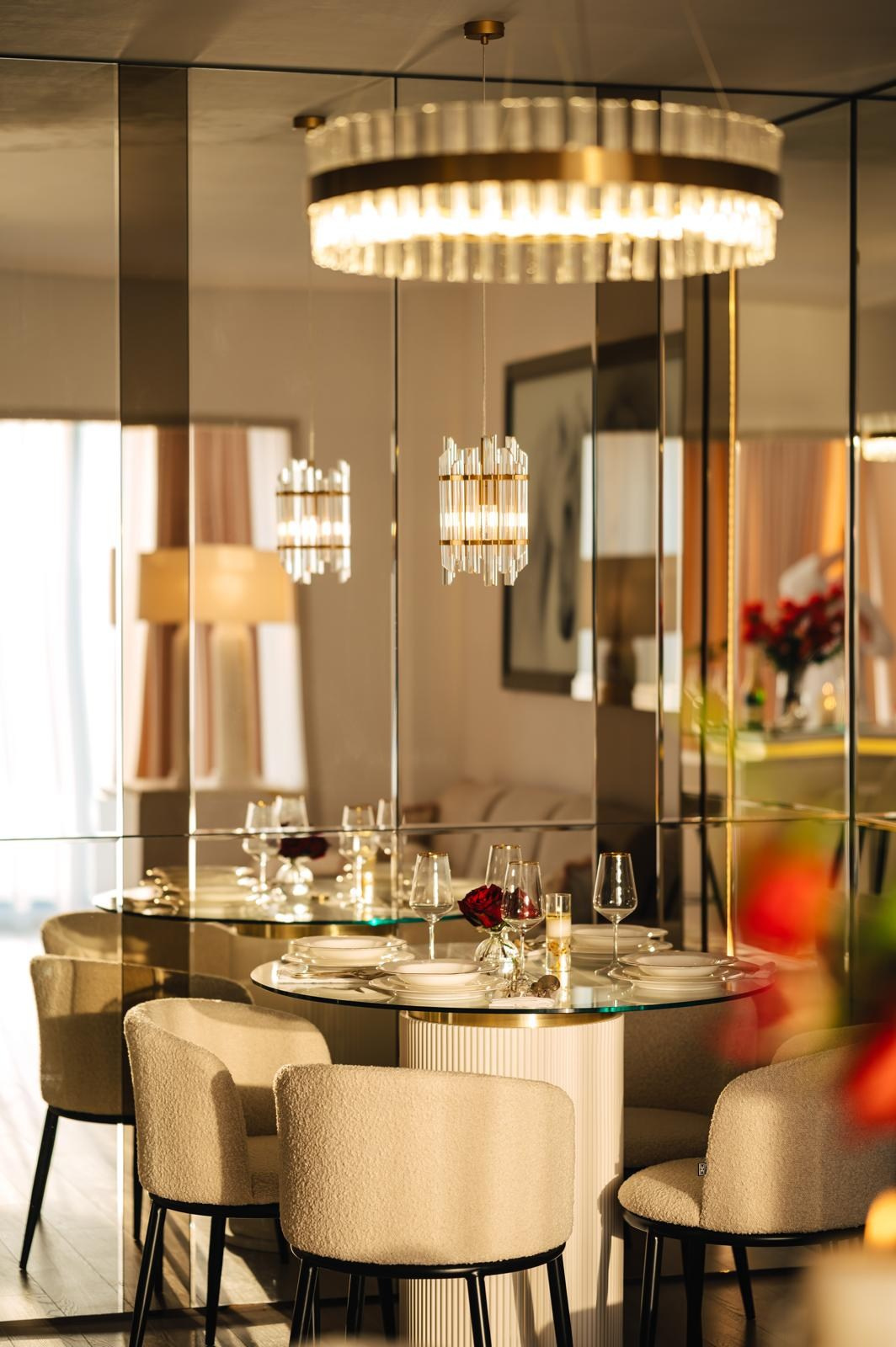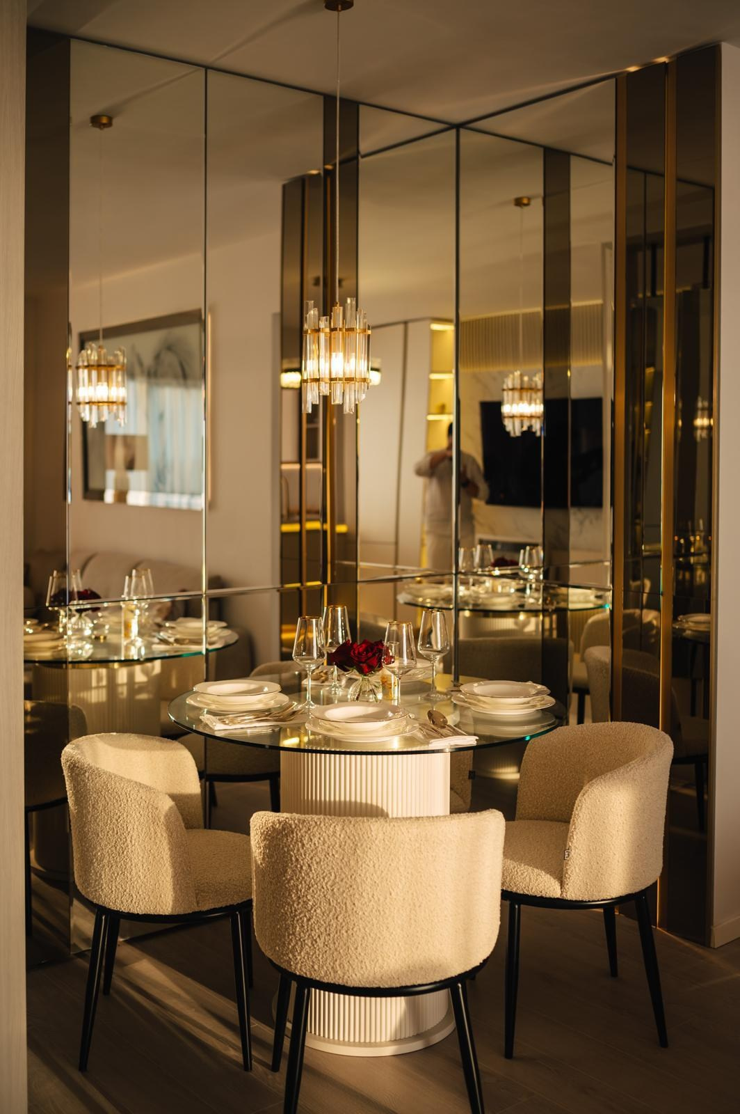 - Proiectul Panorama Lake impresionează printr-un design rafinat și exclusivist, unde eleganța și confortul se îmbină într-o atmosferă sofisticată. Spațiile sunt definite de finisaje prețioase, texturi calde și detalii aurii care adaugă un plus de lux subtil. Jocul de oglinzi și reflexii amplifică lumina și creează o senzație de profunzime, în timp ce mobilierul atent ales transmite un echilibru perfect între funcționalitate și estetică. Rezultatul este un ambient armonios, luxos și modern, conceput pentru a redefini ideea de eleganță contemporană.
