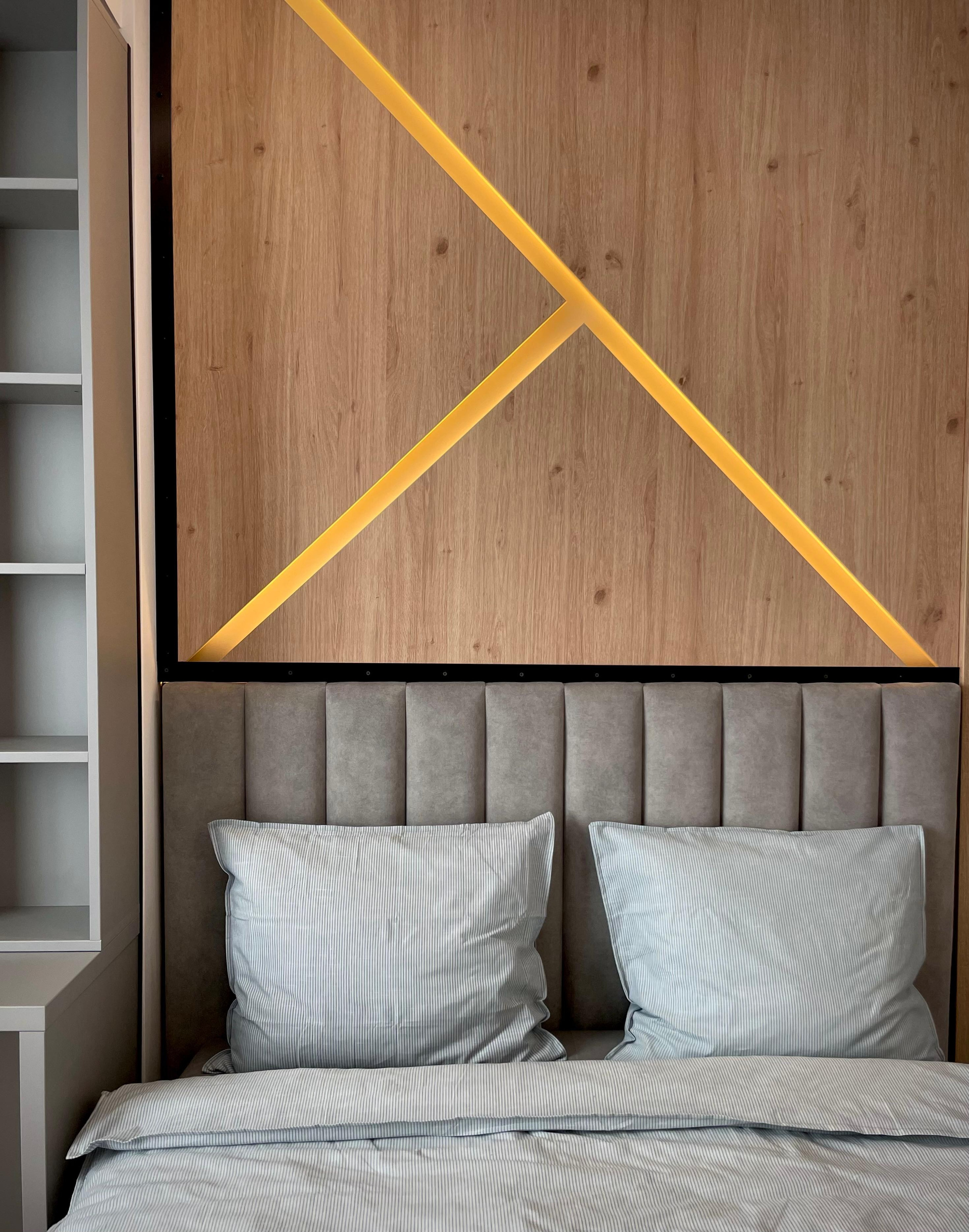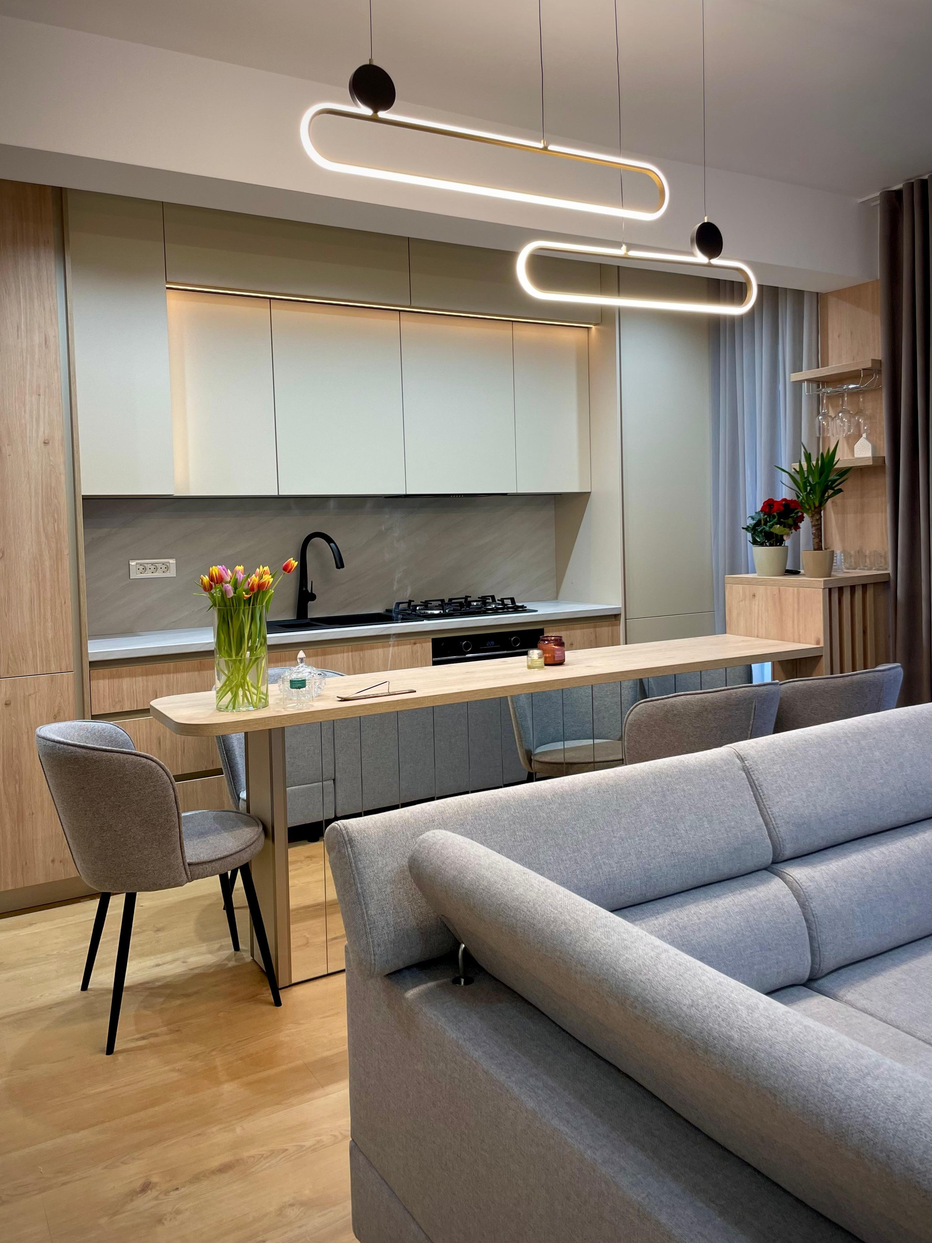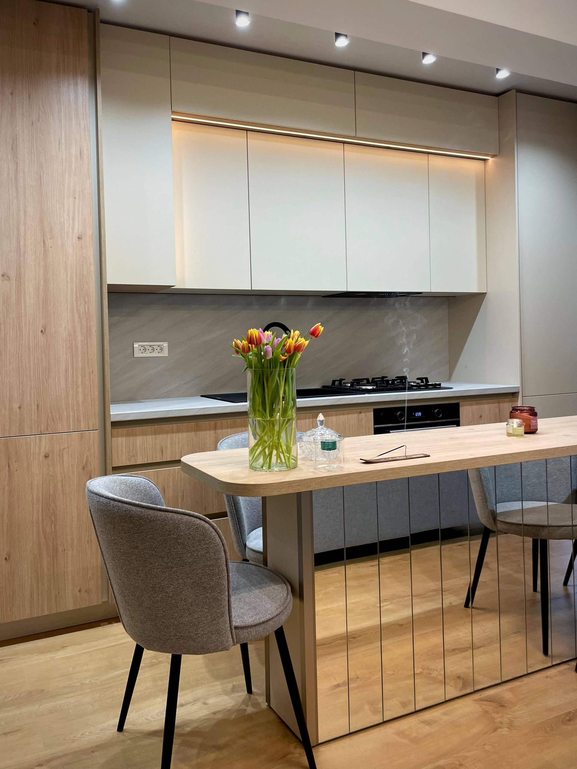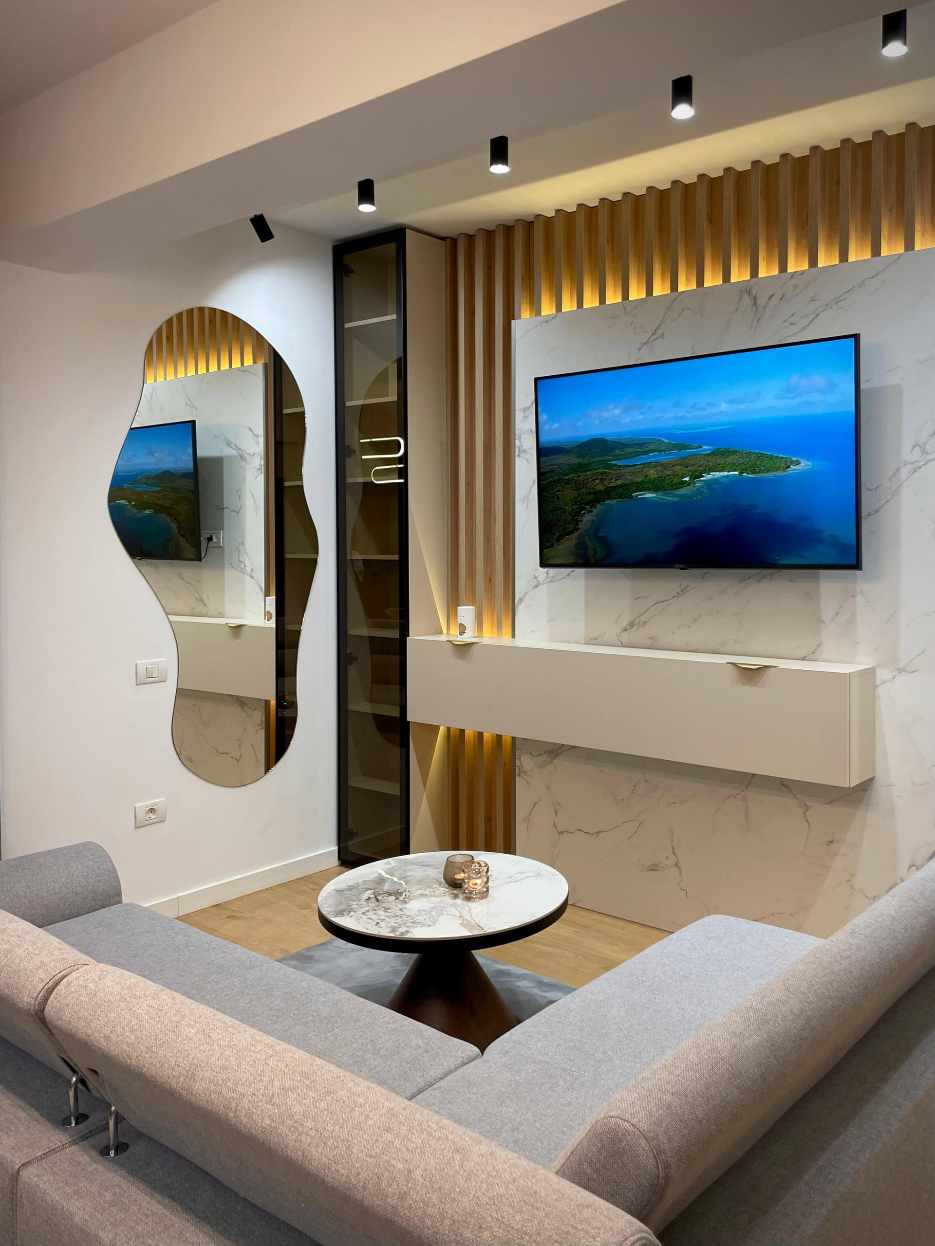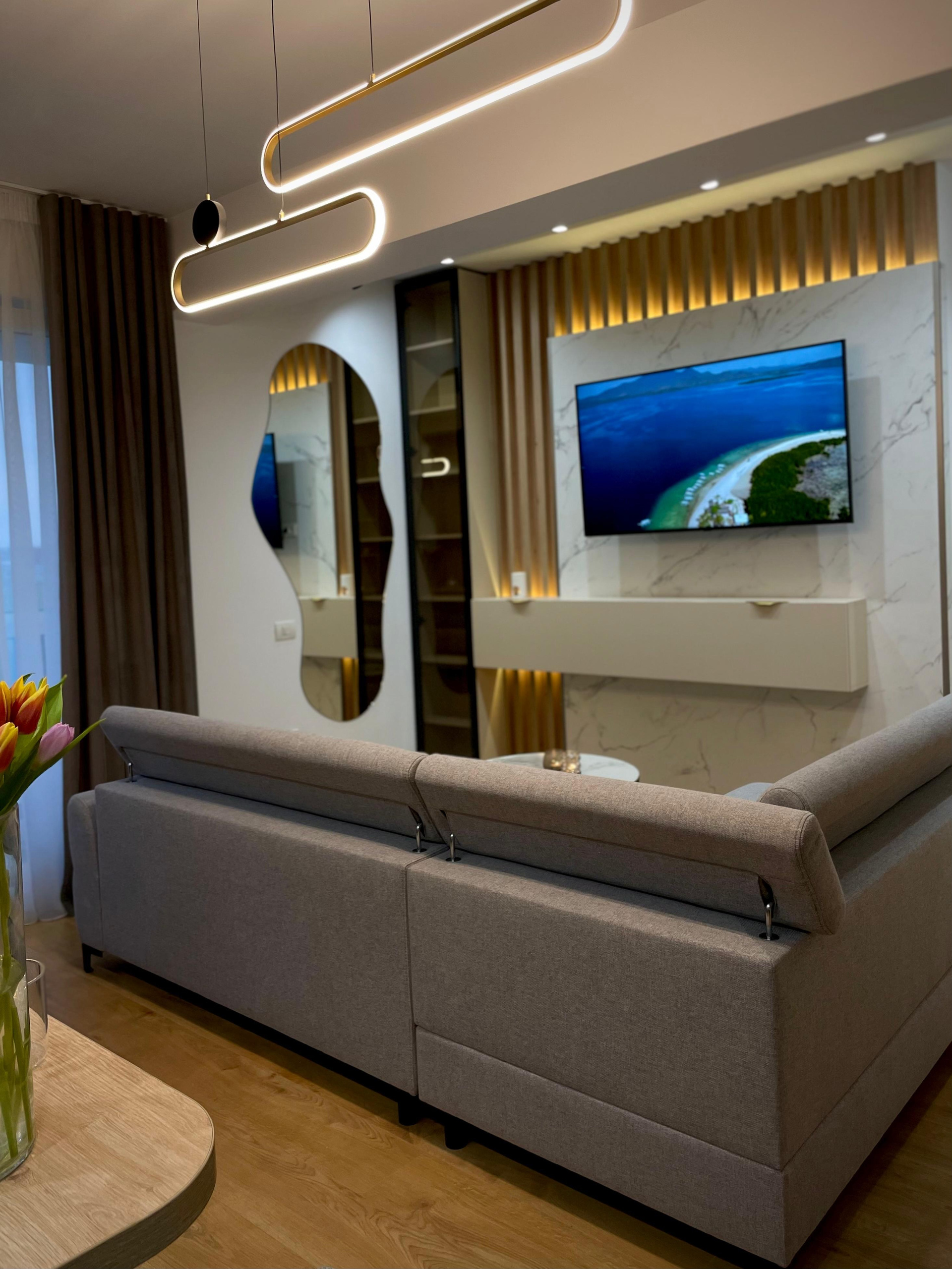 - Project B3 se remarcă printr-un design contemporan, definit de simplitate elegantă și detalii atent integrate. Bucătăria minimalistă, completată de insula cu reflexii subtile, oferă un echilibru între estetică și funcționalitate. Livingul este accentuat de linii moderne, oglinzi sculpturale și tonuri calde, creând un spațiu primitor și sofisticat.