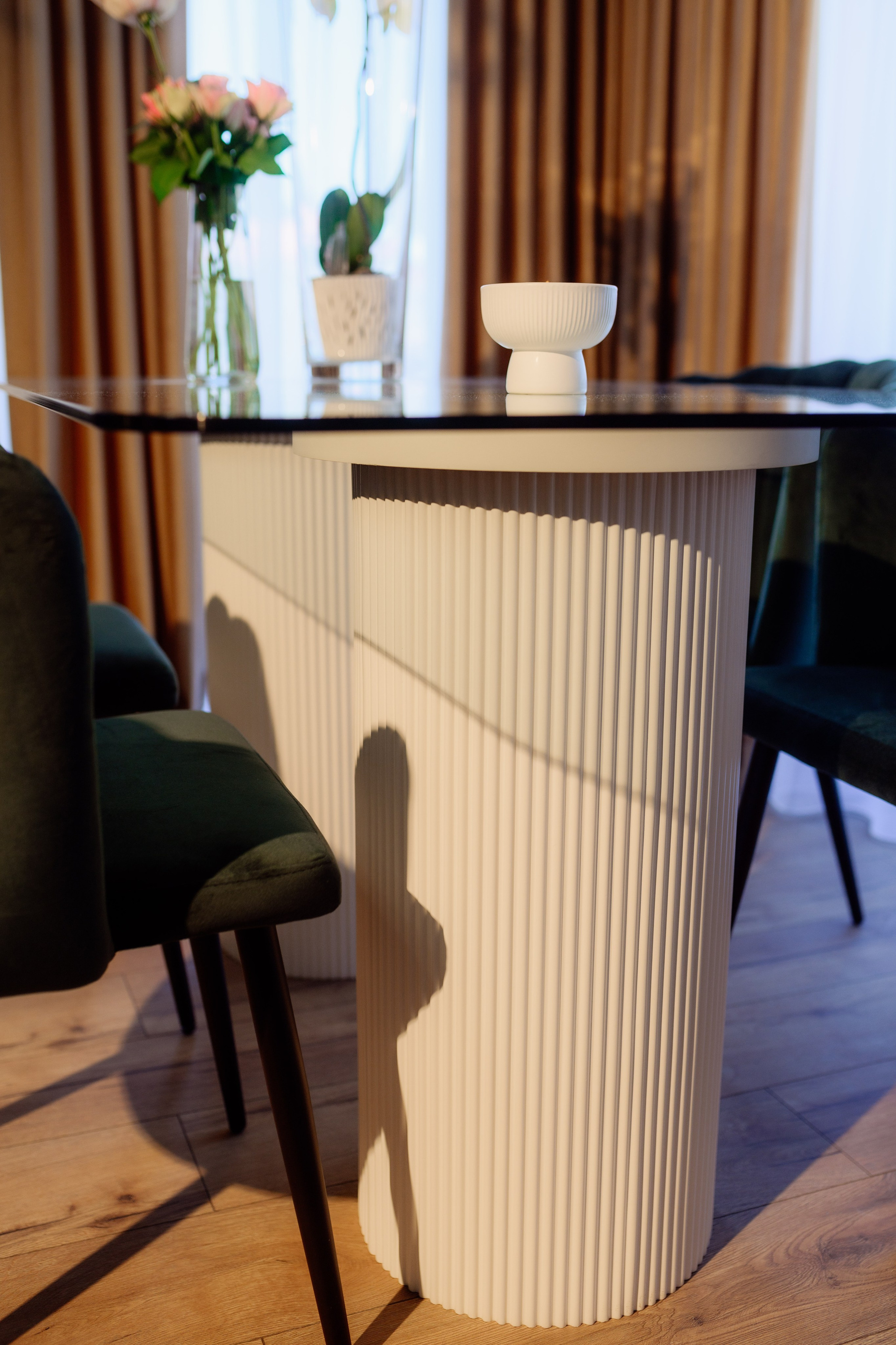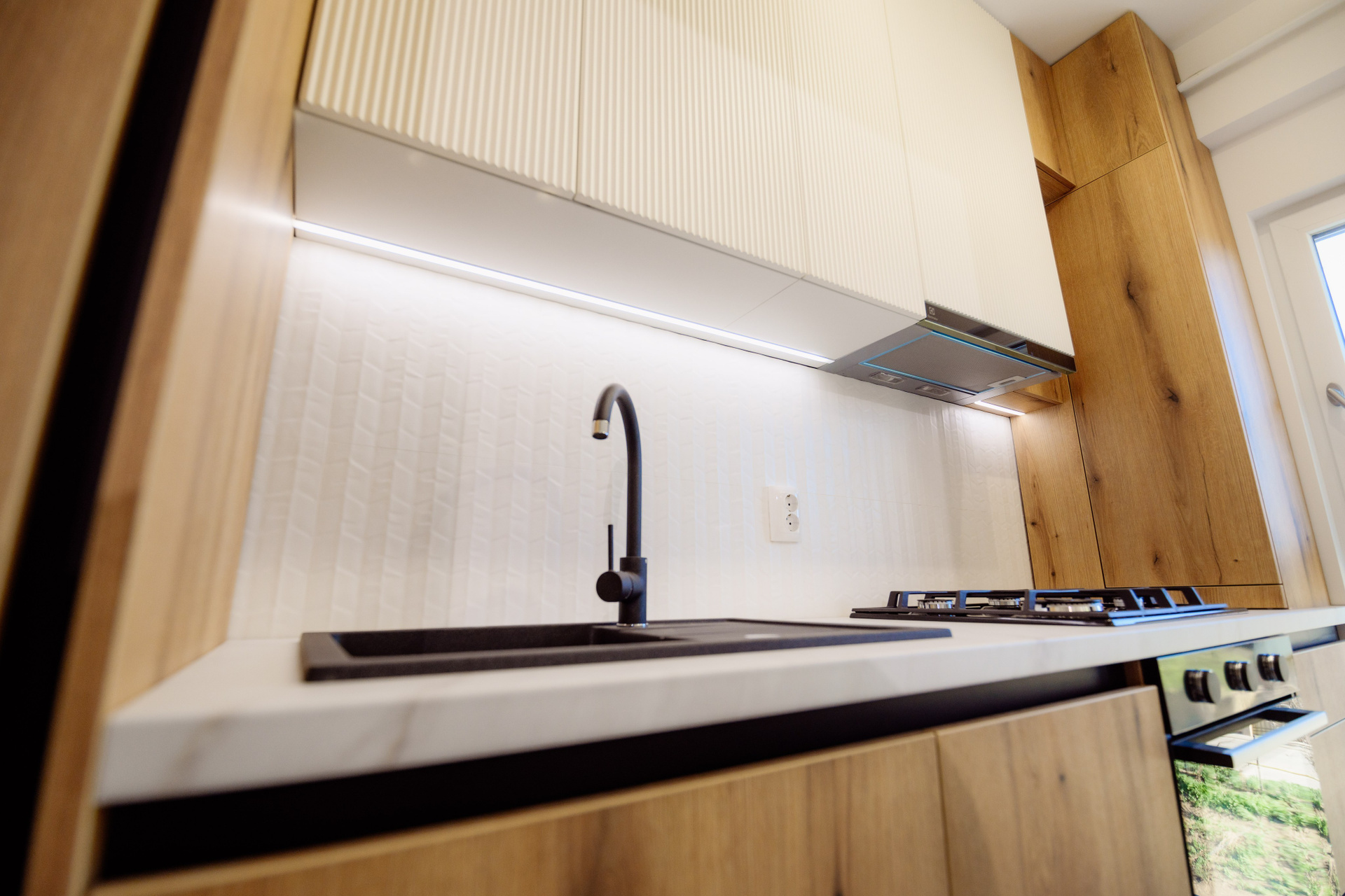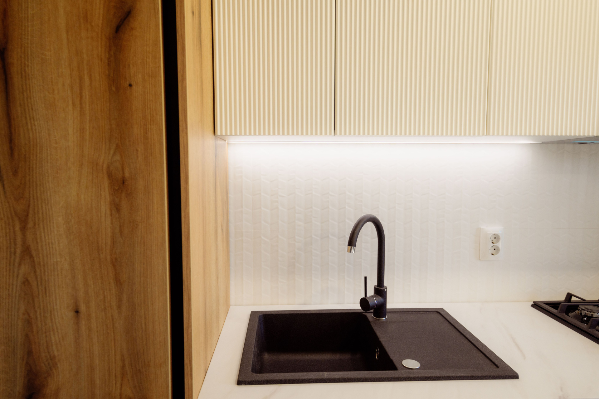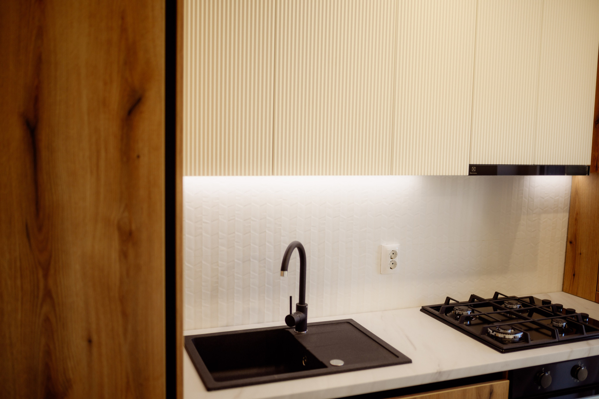 - Proiectul Freya se remarcă printr-un design cald și rafinat, în care lemnul natural devine elementul central. Texturile bogate, liniile verticale și iluminarea ambientală creează o atmosferă primitoare și sofisticată. Tonurile de verde smarald adaugă un contrast elegant, completând armonia dintre confort și estetică modernă. Rezultatul este un spațiu echilibrat, stilat și plin de personalitate.