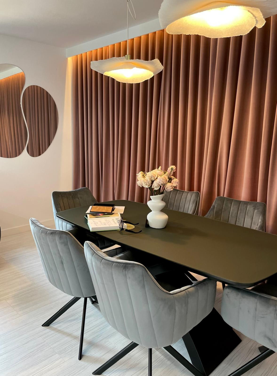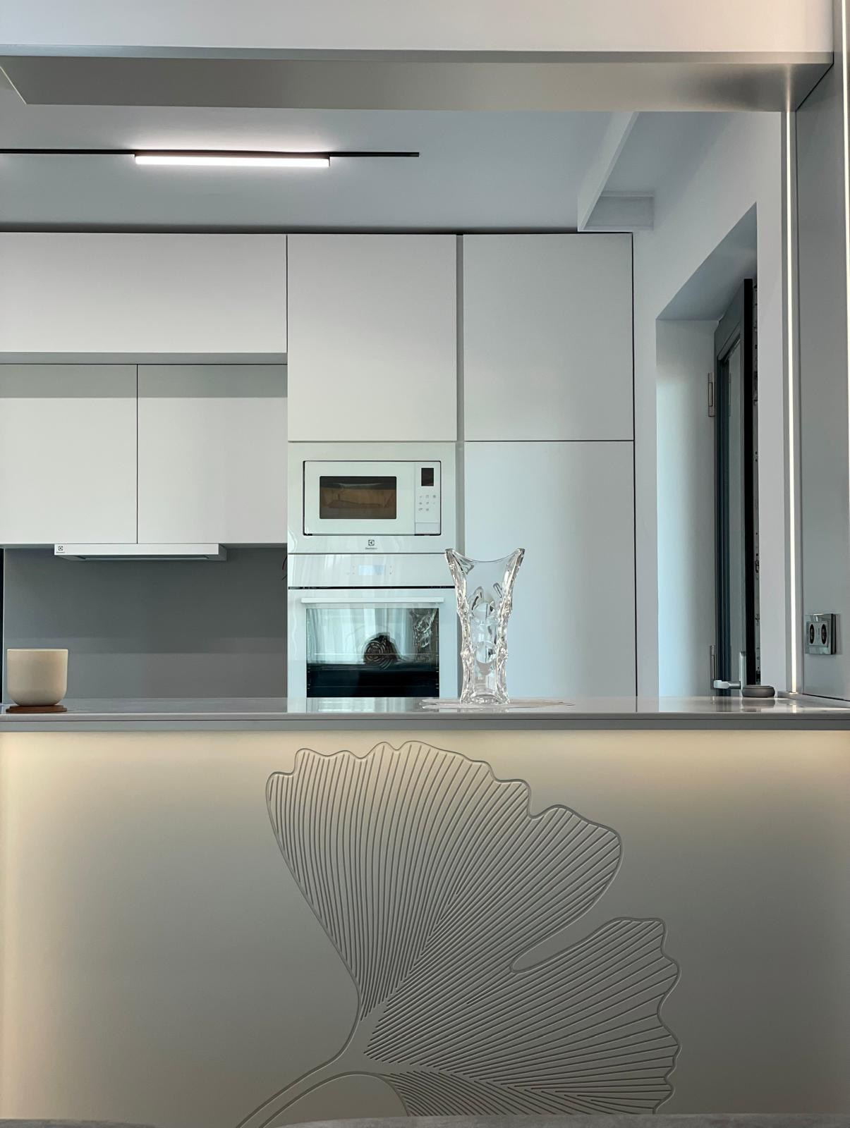 - Proiectul The Gingko reflectă o eleganță naturală și armonioasă, unde liniile moderne se îmbină cu accente organice. Paleta cromatică neutră este îmbogățită de texturi fine și contraste subtile, iar oglinzile sculpturale și corpurile de iluminat cu forme fluide adaugă profunzime și expresivitate. Întregul spațiu transmite un echilibru între modernitate, rafinament și natură, creând o atmosferă caldă și sofisticată.
