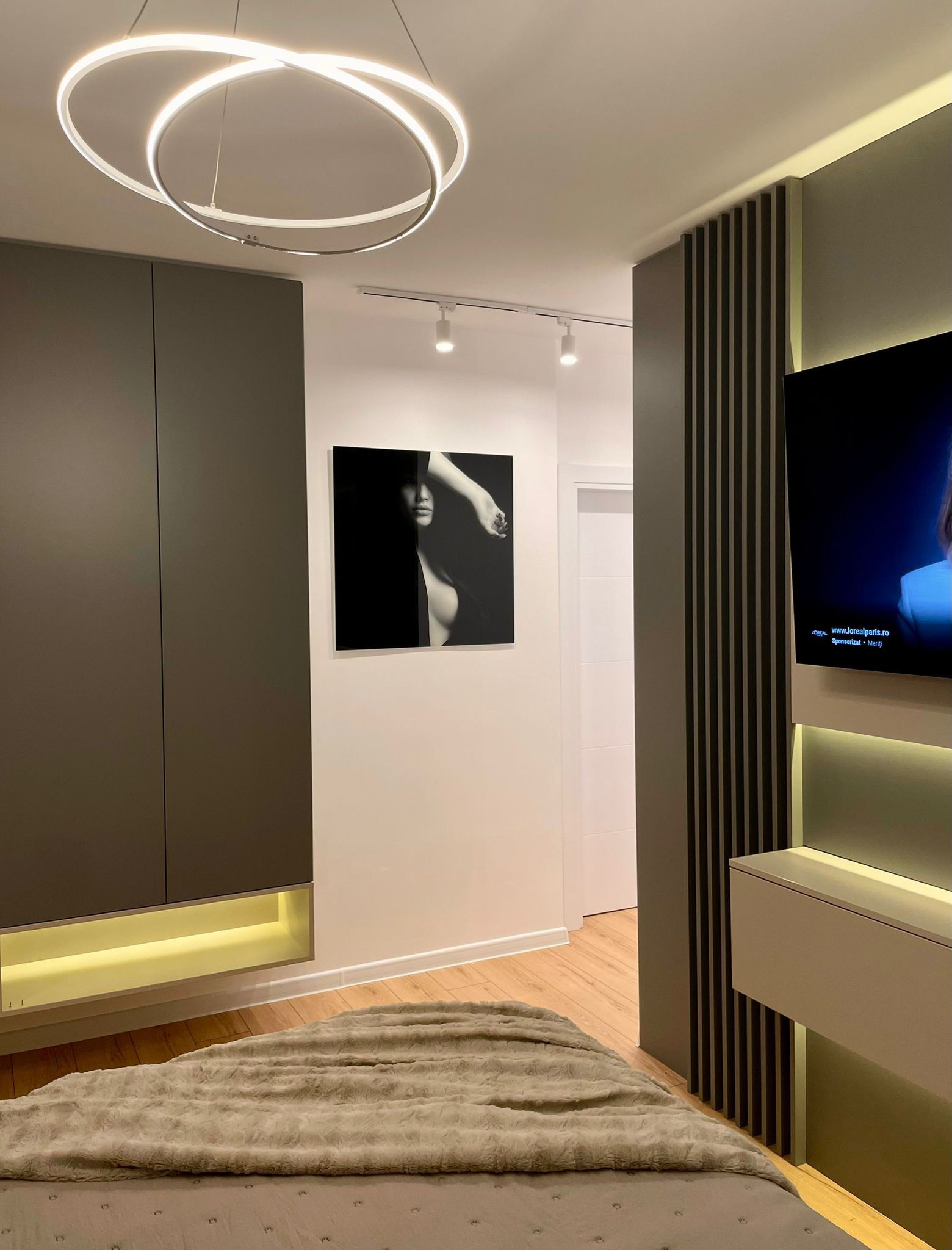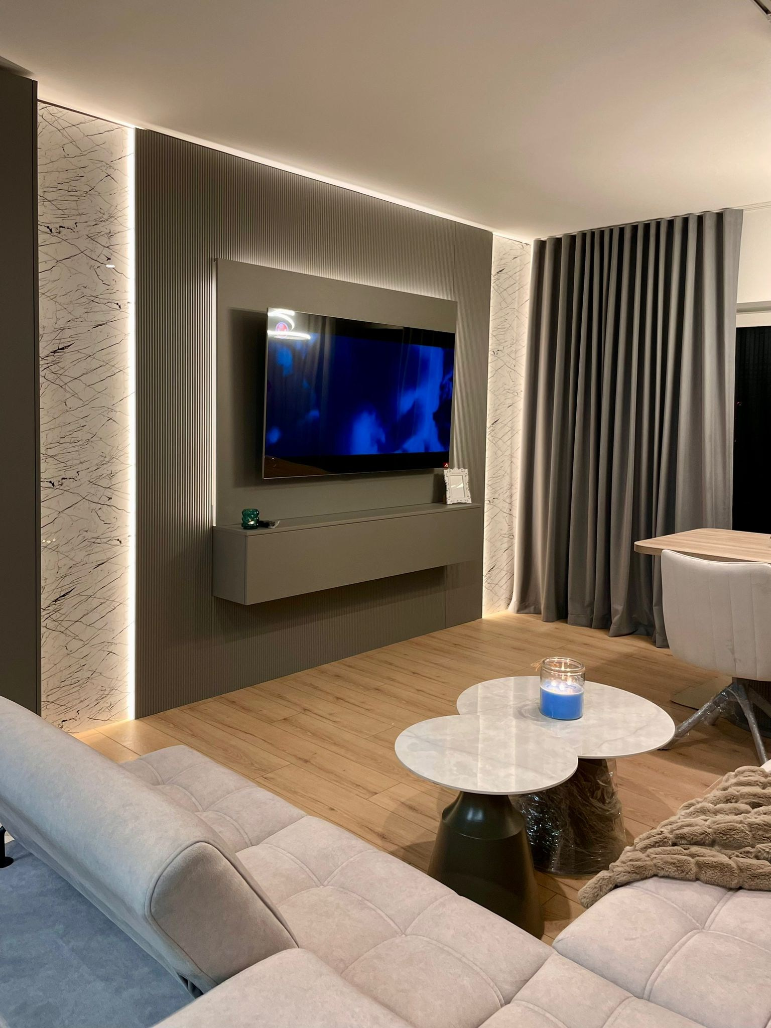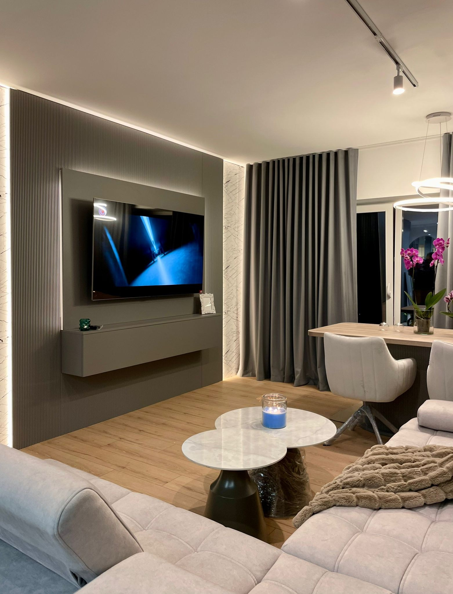 - Proiectul The Grey Orchid surprinde prin armonia dintre tonurile neutre, texturile sobre și accentele florale pline de viață. Mobilierul minimalist, completat de finisaje moderne și oglinzi spectaculoase, aduce un aer contemporan și sofisticat. Inserțiile de culoare și iluminarea ambientală dau căldură și personalitate, transformând spațiul într-un ambient echilibrat, elegant și primitor.