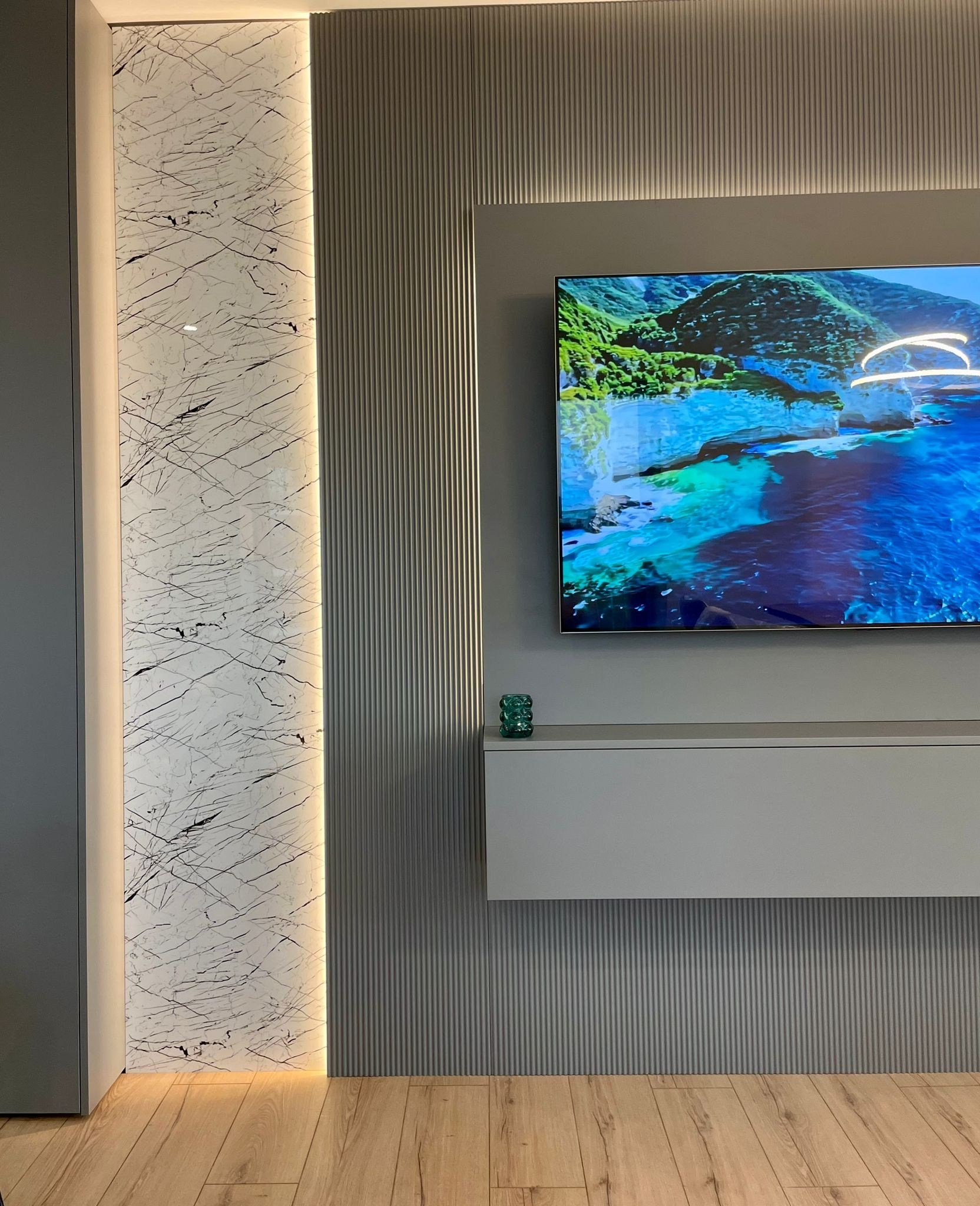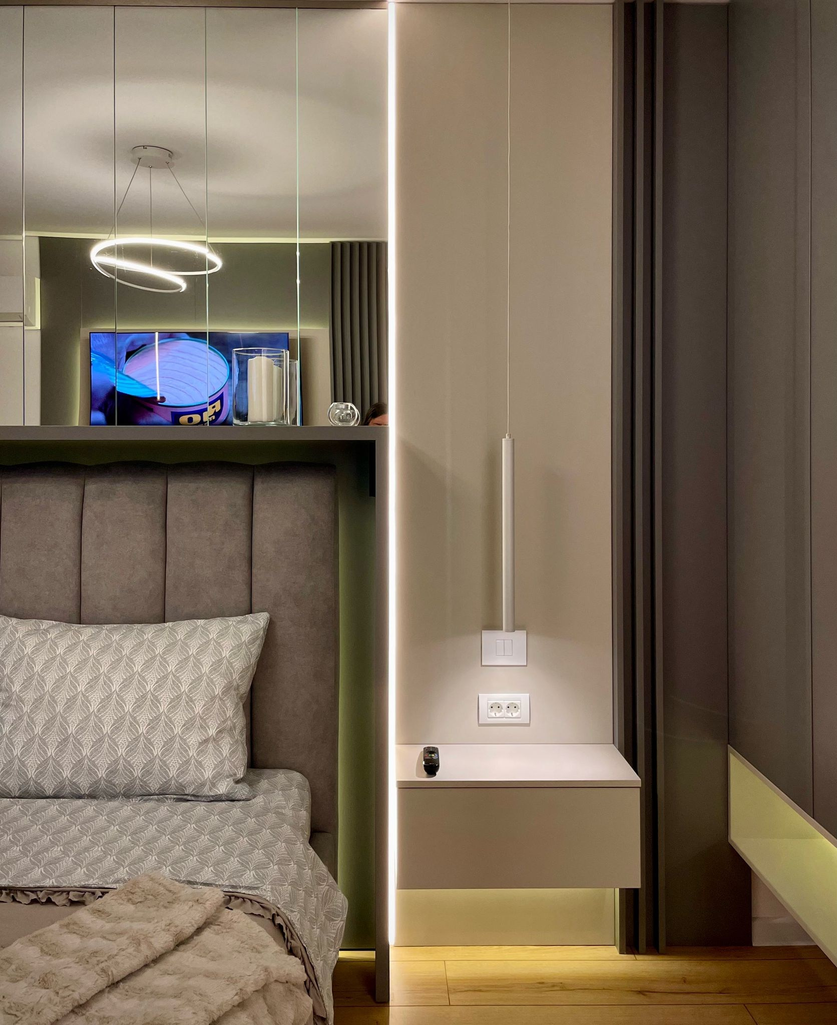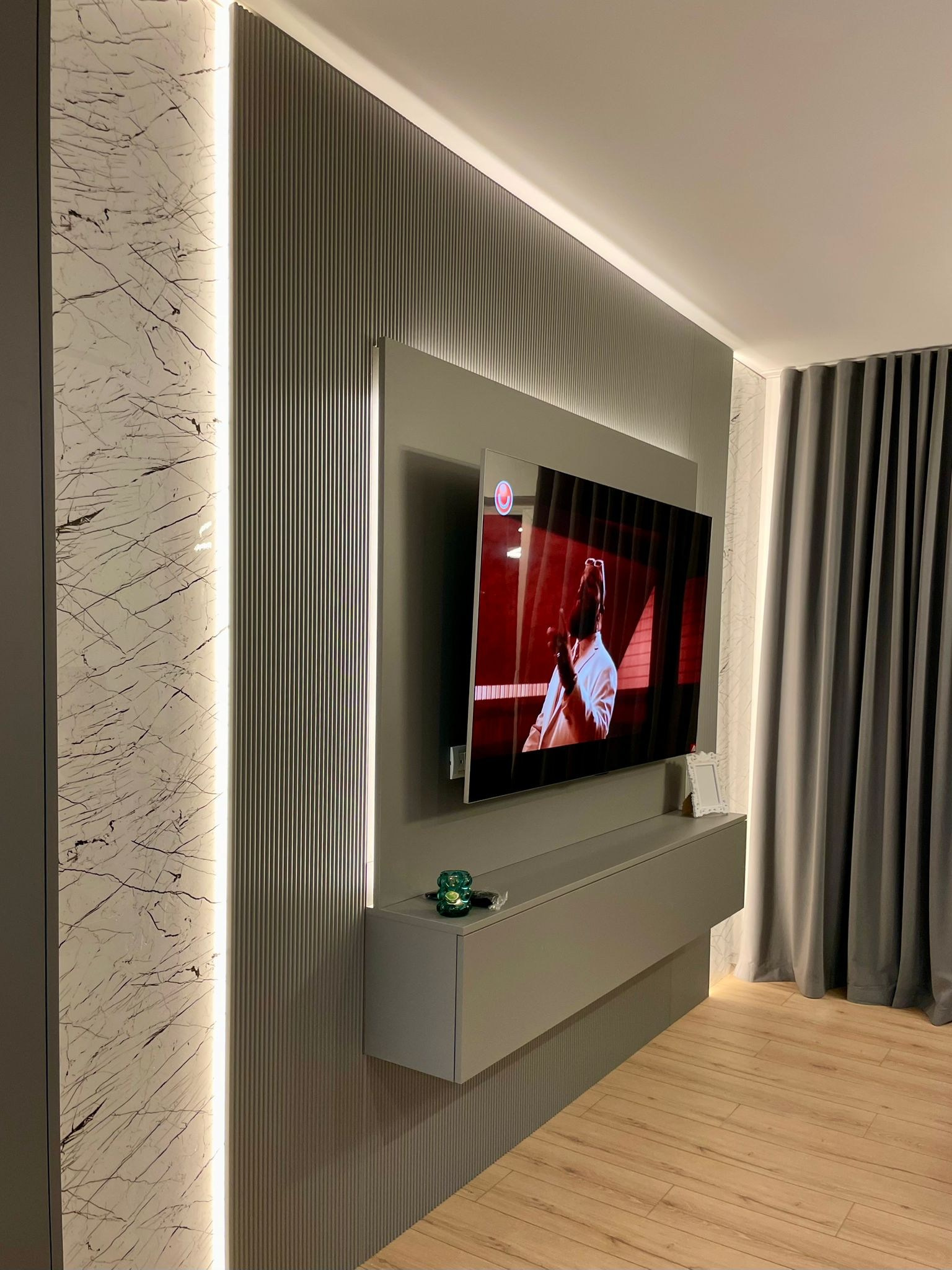 - Proiectul The Grey Orchid surprinde prin armonia dintre tonurile neutre, texturile sobre și accentele florale pline de viață. Mobilierul minimalist, completat de finisaje moderne și oglinzi spectaculoase, aduce un aer contemporan și sofisticat. Inserțiile de culoare și iluminarea ambientală dau căldură și personalitate, transformând spațiul într-un ambient echilibrat, elegant și primitor.